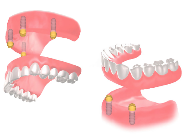 お口に埋入した2〜4本のインプラントを固定源として、入れ歯をしっかり支えます。入れ歯は取り外しが可能なため、お手入れも簡単です。通常のインプラント治療に比べて身体的・経済的負担を抑えながら、自然な噛み心地を得ることができます。