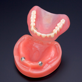 残っている歯に金属を取り付け、磁石付きの入れ歯を装着します。磁力によって入れ歯を固定するため外れにくく、見た目も目立ちにくいのが特長です。また、入れ歯自体を小さくできるため、装着時の違和感も軽減されます。