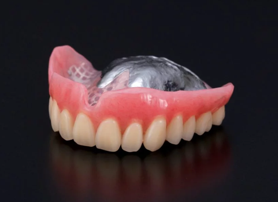 入れ歯を支える金属のバネ(クラスプ)がないため、目立ちにくい入れ歯が「ノンクラスプデンチャー」です。一般的なノンクラスプデンチャーは樹脂(プラスチック)のみで作られているため、経年劣化によって変形することがあります。当院では、土台部分を金属で補強した「金属床」の入れ歯をご提供しています。